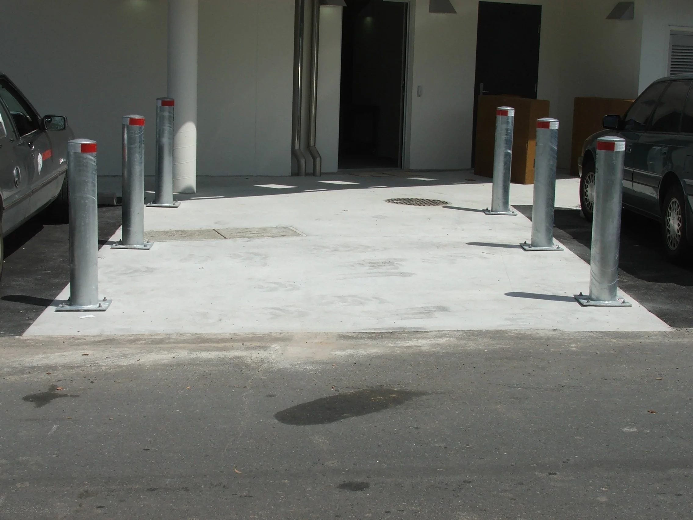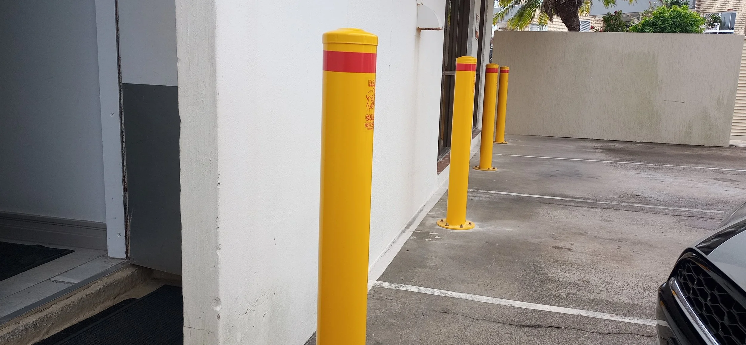 Bolt down bollards are usually installed where footings cannot be installed. This can be due to underground water, power and telephone lines or suspended slabs such as multi-level carparks.